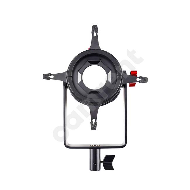 Designed for the LS 60d and 60x LED lights, this Spotlight Mini Zoom from Aputure is a 2X optical projection lens. When mounted to the LS 60d or 60x, the combined fixture gives you the ability to completely redefine the shape of the light output by using the built-in shutters and drop-in iris. The Spotlight Mini Zoom also accepts m-size gobos. The 2X optical zoom lens can project a beam angle of 15 to 30° and provides a wide range of flexibility with a single tool. At a distance of 5m (16.4′) the Spotlight Mini Zoom can project an image circle of 1.4-2.8 m (4.6 to 9.2′) depending on the zoom setting. The Spotlight Mini Zoom also pairs well with modern reflector technology, focusing the pin-point accuracy of the projection lens onto reflectors for unique lighting designs.