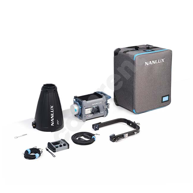 Powerful and extremely color-accurate, the Evoke 600C RGB LED Spot Light Trolley Case Kit from Nanlux arrives as the ideal choice for a light setup in need of an all-in-one full-color fixture with no external ballast. 600C itself measures 14 x 9.7 x 8″ and weighs 16 lb to offer a native BE mount for standard Bowens compatibility. Developed to accommodate most situations, the light’s wide color balance from 1000 to 20,000K is backed by an extensive +/- 200 green/magenta tint-shifting. What is behind this advanced capability is the Nebula C8 8-chip light engine that mixes deep red, red, amber, lime, green, cyan, blue, and indigo LEDs for the most vivid colors. The Evoke 600C permits AC/DC power and features a wide range of reliable control methods—onboard, DMX/RDM, LumenRadio CRMX, app, or using the supplied wired controller. Finally, the Evoke 600C is built around an IP66-rated housing for all-weather protection. Nanlux adds a trolley case that ensures full protection during storage and transportation.