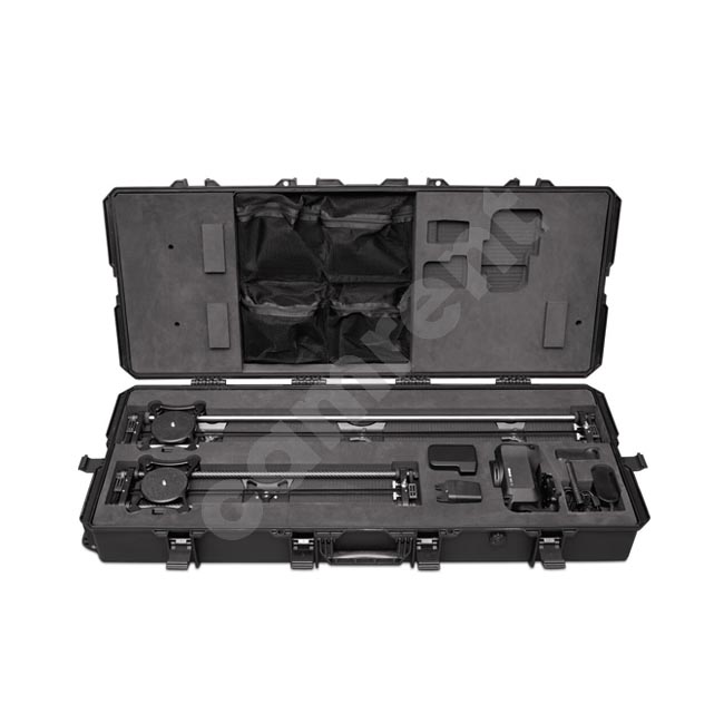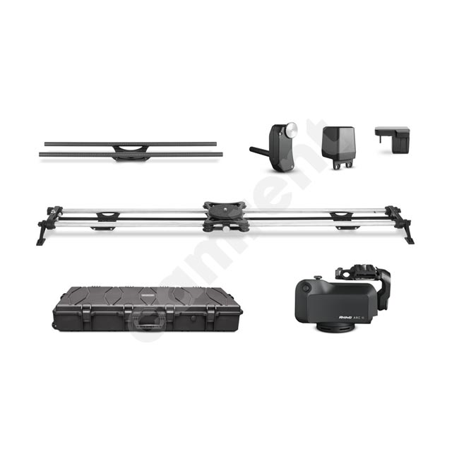 The Ultimate Slider Bundle from Rhino Camera Gear includes the 42″ stainless steel Slider Pro, ARC II 4-axis motorized head, Rhino Focus for ARC II, and high-speed and high-torque motors. It also includes interchangeable 24″ carbon fiber rails for better mobility where applicable, and a hard carry case with designated compartments for the entire bundle. The ARC II is a highly advanced motorized pan and tilt device. With the slider, slider motors, ARC II, and Rhino Focus, you get a sophisticated 4-axis setup that lets you keyframe motion and rack focus. The high-speed slider motor is designed for horizontal slides, while the high-torque motor is for incline and vertical shots.