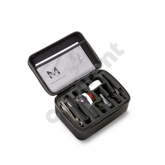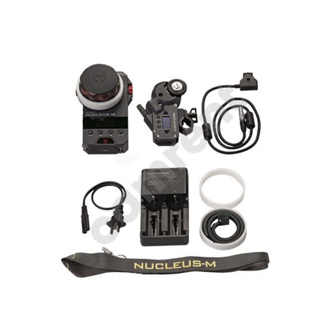 The Tilta Nucleus-M Wireless Lens Control System 1 Motor Kit contains the essential elements for pulling focus and iris wirelessly. The kit includes the Nucleus-M FIZ hand unit controller, two Nucleus-M motors, two removable lens belts (DSLR Lens Follow Focus Adapters), two motor power cables, two marking disks for the hand unit, a lanyard for the hand unit, and a battery charger unit. The system enables an AC to pull focus and iris on a prime lens. If you are using a lens that does not have standard cine-style gears, then use the included lens belts to add gears to your lens.